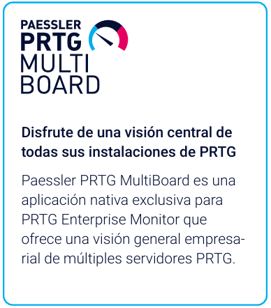 PRTG está disponible en Inglés, Alemá¡n, Español, Francés, Holandés, Japonés, Checo y Chino. Puedes acceder a PRTG desde un equipo de escritorio con Windows o a través de un navegador web en cualquier plataforma. Si deseas comprobar el estado de tu red mientras estas fuera de la oficina, puedes usar cualquiera de nuestras aplicaciones para iPhone/iPad o Android en tu telfono celular o tablet.